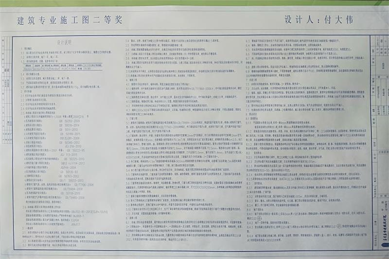 上圖為建筑專業(yè)二等獎獲得者 付大偉 參選施工圖