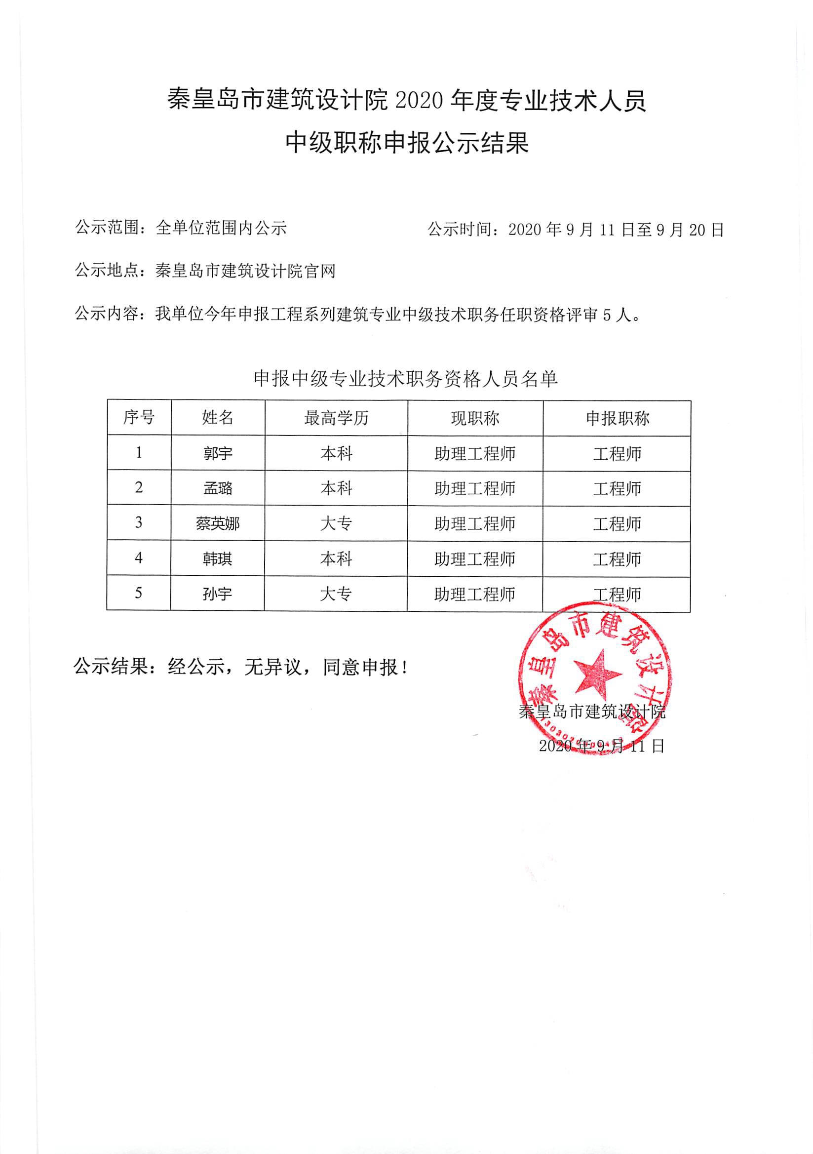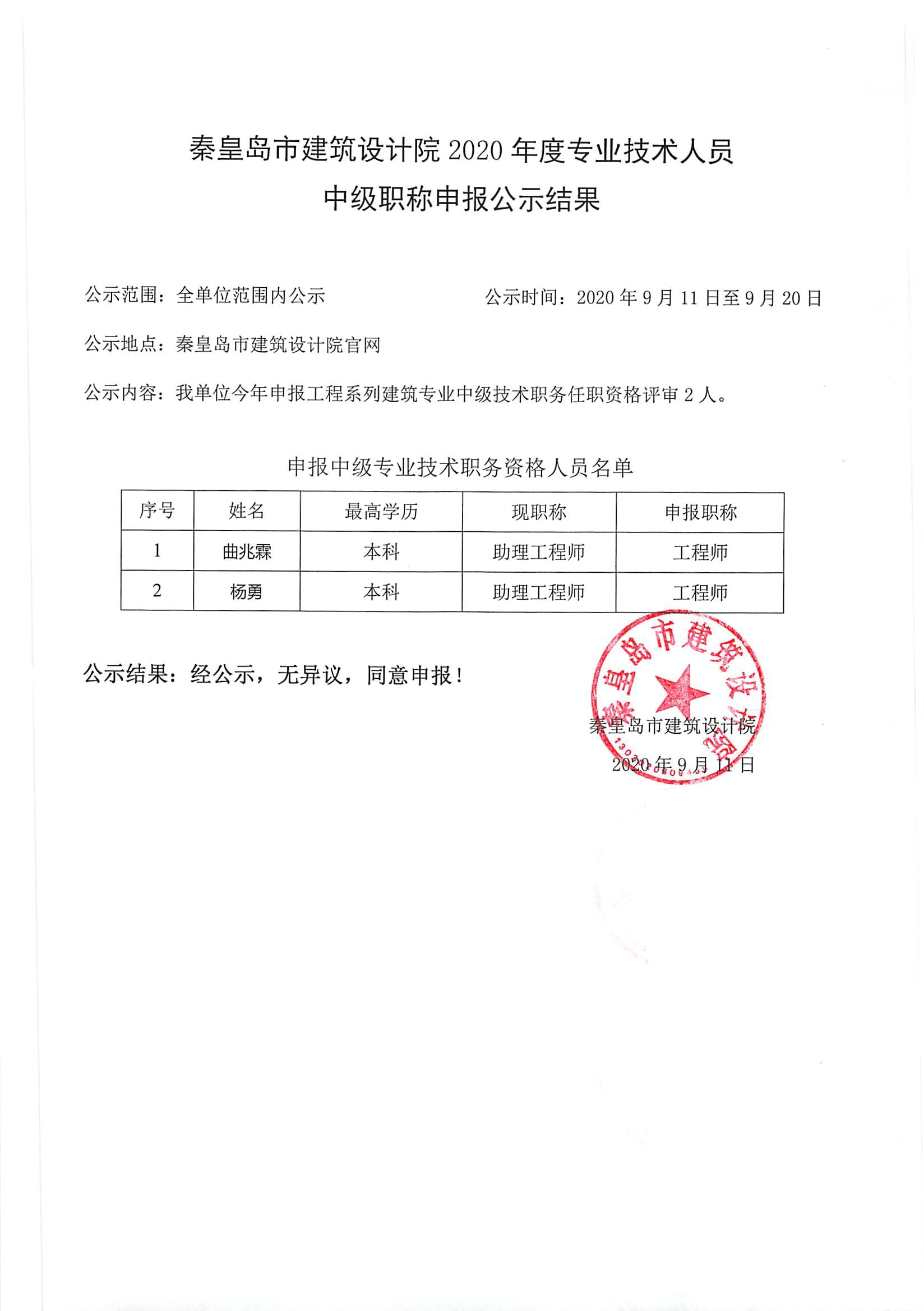 2020職稱公示結果