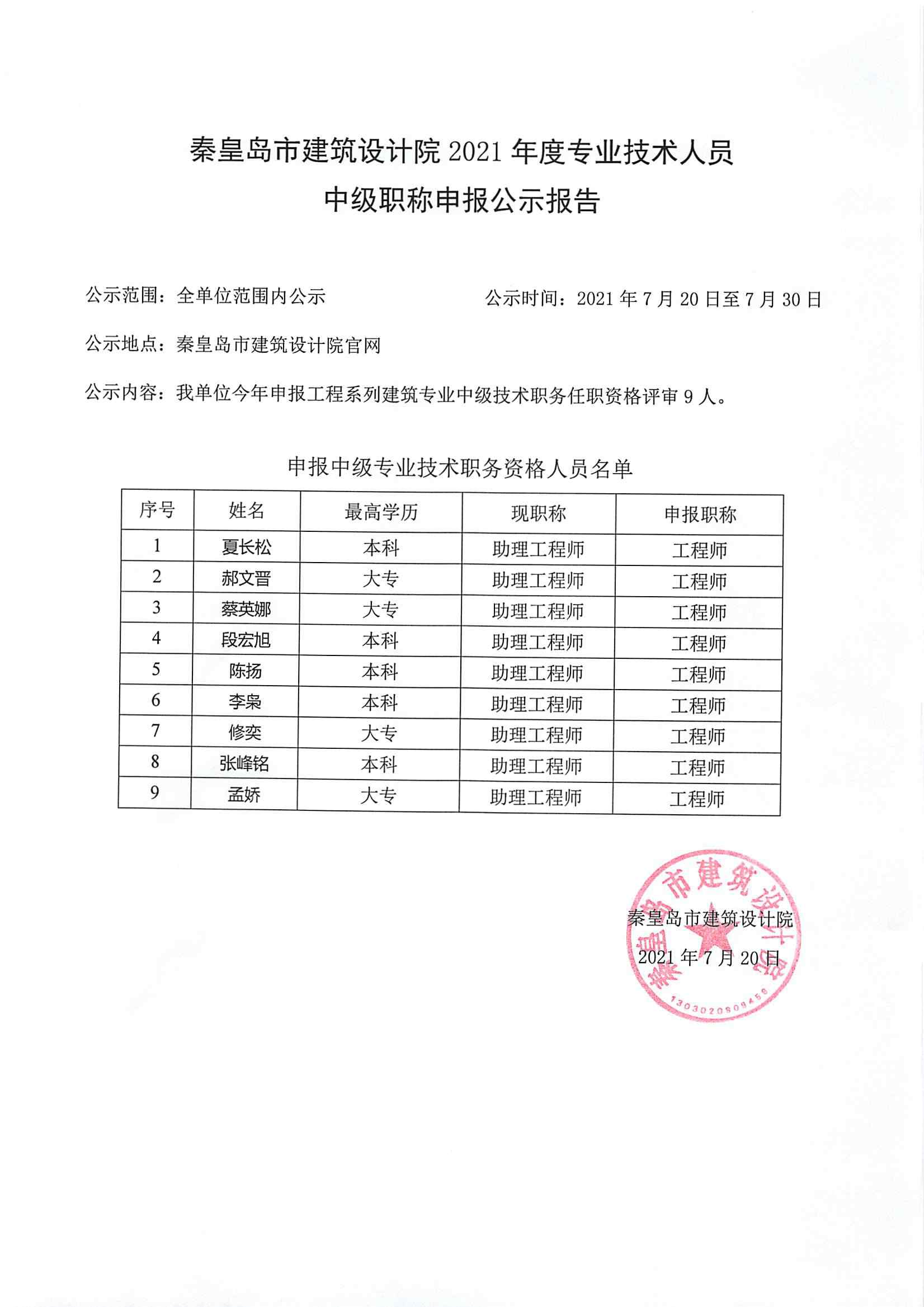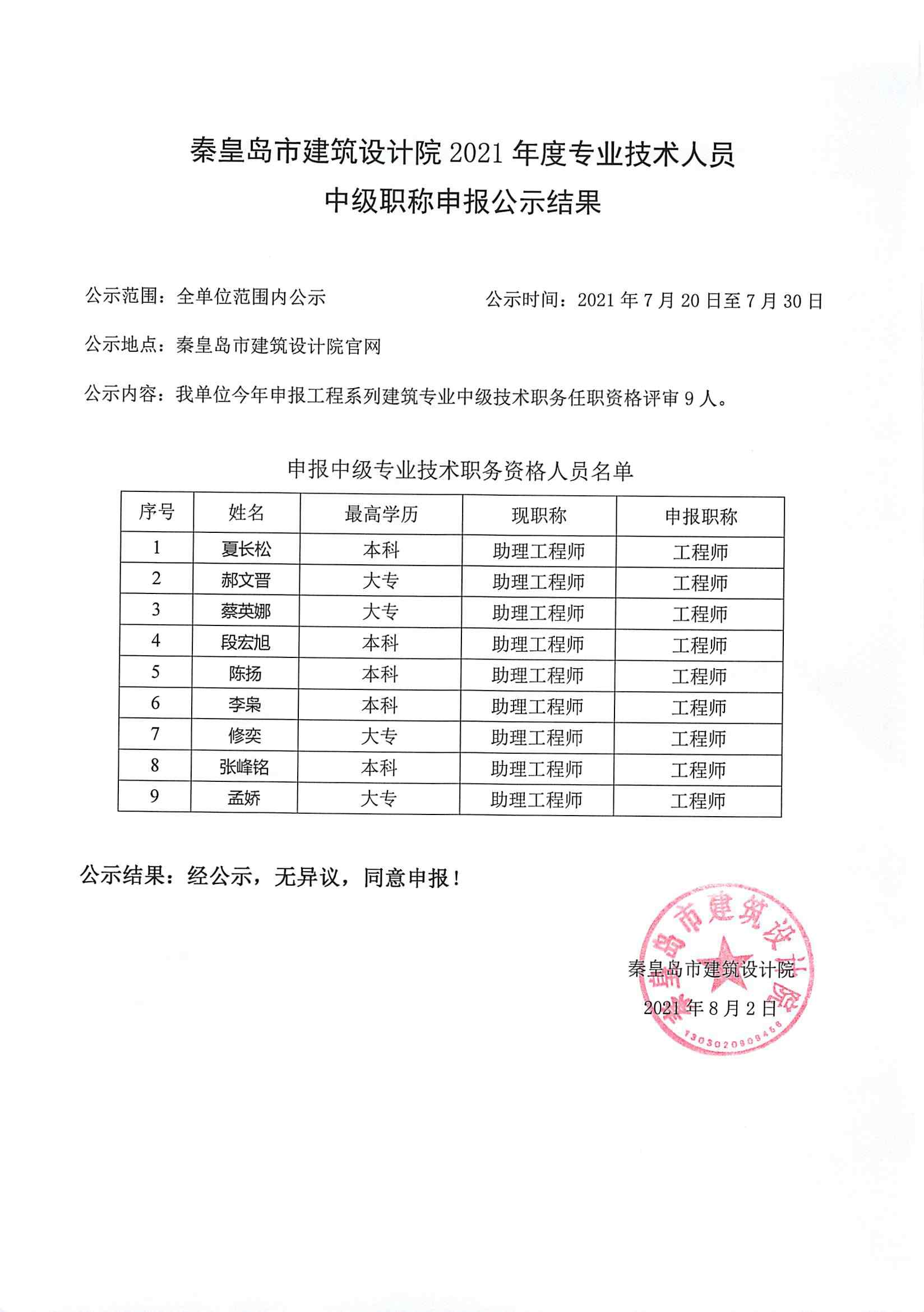 2021職稱公示結果1