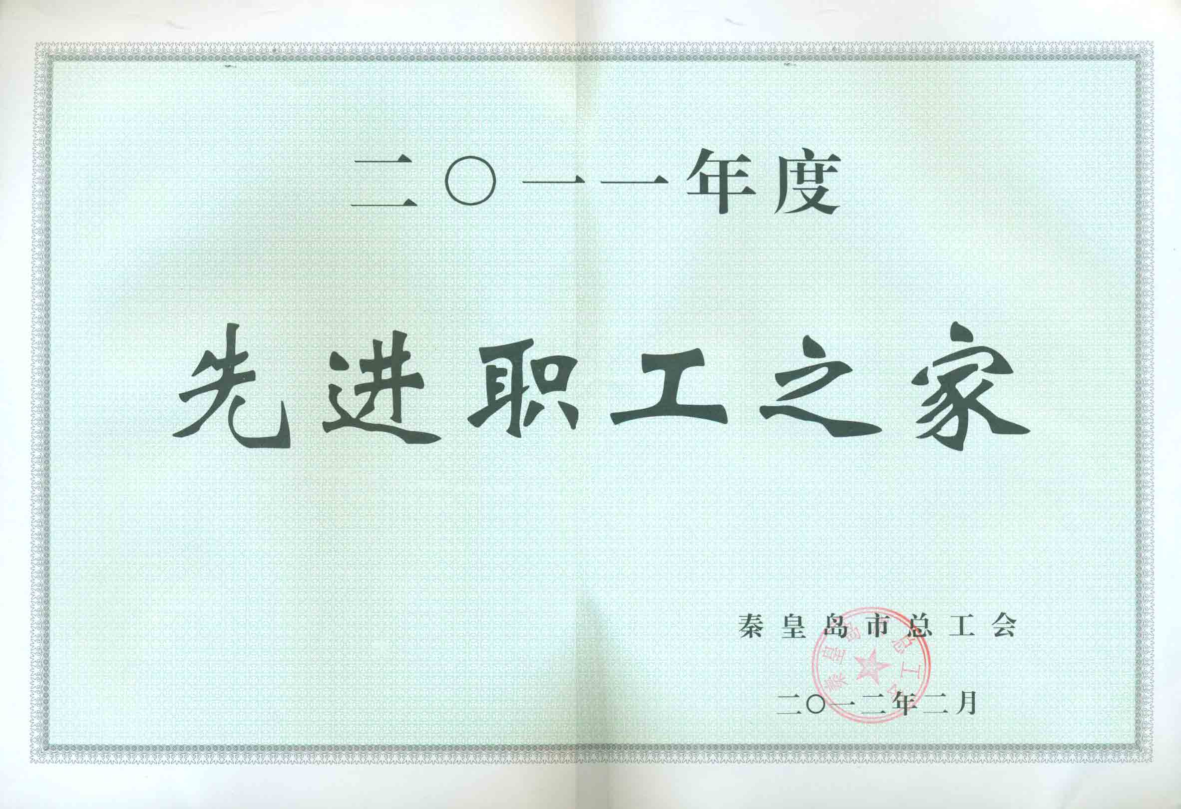秦皇島市總工會授予我院工會“二零一一年度先進(jìn)職工之家”稱號。